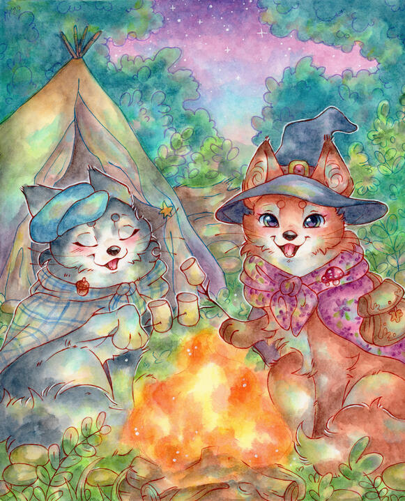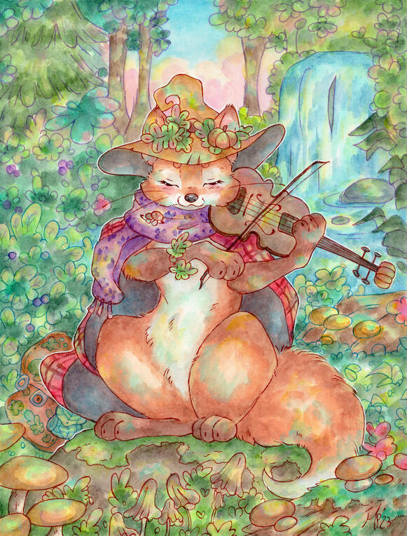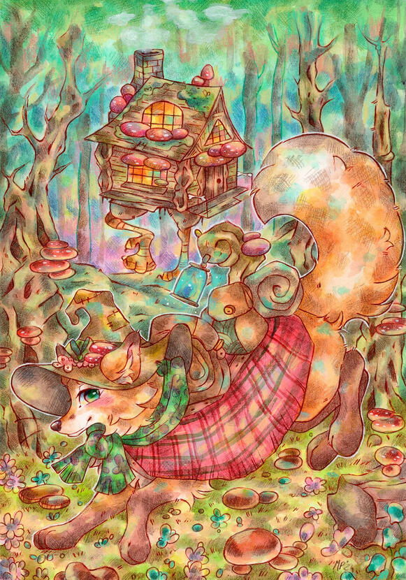 with detailed background. Small animal anthros can be drawn in full body. (Anything between mice and foxes) 150€+